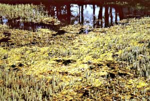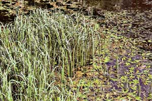 im Bild: die kleinen "Bäumchen" des Tannenwedels ragen aus dem Wasser. Eine Idylle!