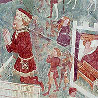 Der Mann betet für seine Frau. Was könnte der Kasten neben dem Bett bedeuten? Bekommt die Frau ein Baby?